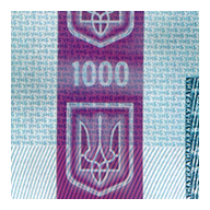 The thread features the denomination “1,000” and Ukraine’s small coat of arms. When looked at from different angles, the thread produces a dynamic light effect – the background image moves in a different direction