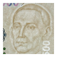 The denomination “500” becomes visible when the note is held at a sharp angle to the light at eye level:
