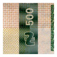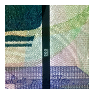 When looked at from different angles, some elements of the banknote generate a dynamic light effect – the ink in some areas gradually changes color from green to blue